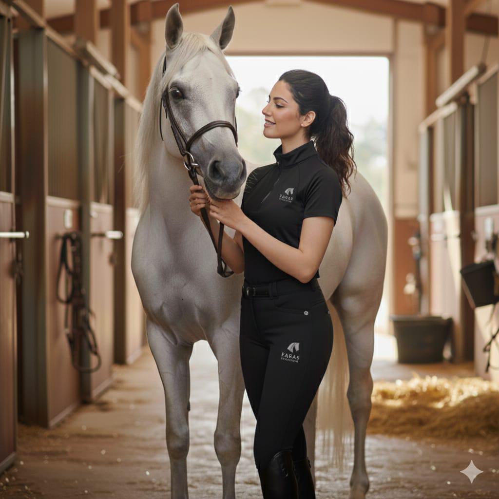 Designed for riders who demand performance and comfort, our Black Riding Leggings feature a high-stretch blend of 75% Nylon and 25% Spandex, delivering flexibility, breathability, and a secure fit—perfect for every ride, from training to competition.